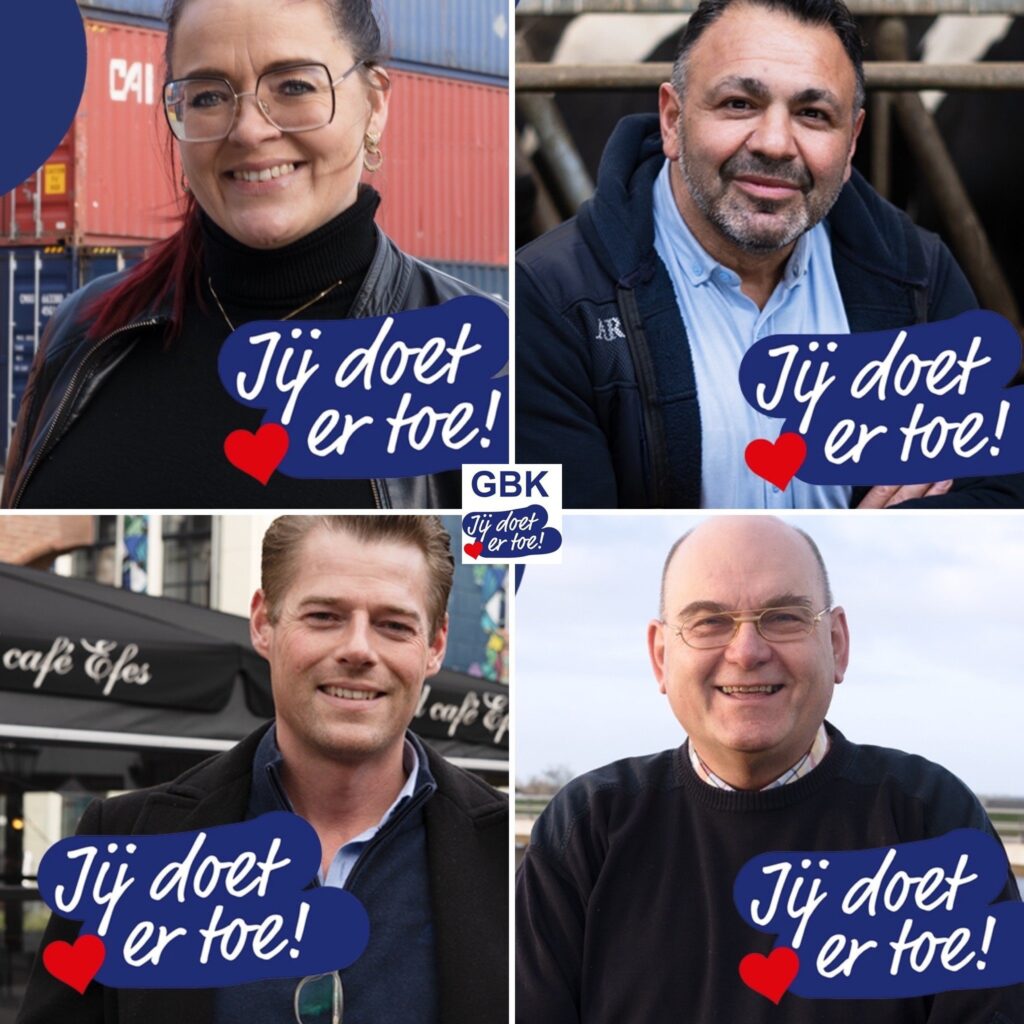 Onze kandidaten komen uit alle lagen van de samenleving – ondernemers, vrijwilligers, jongeren, ouders en ouderen. Juist die diversiteit maakt GBK sterk. We beslissen niet vanaf het pluche, maar samen met de mensen die ertoe doen.